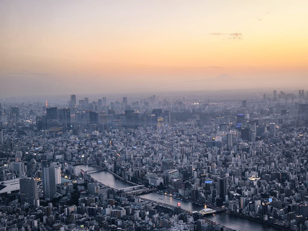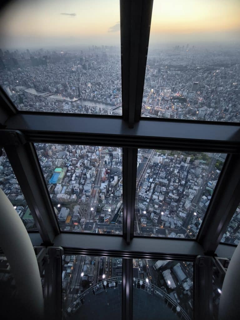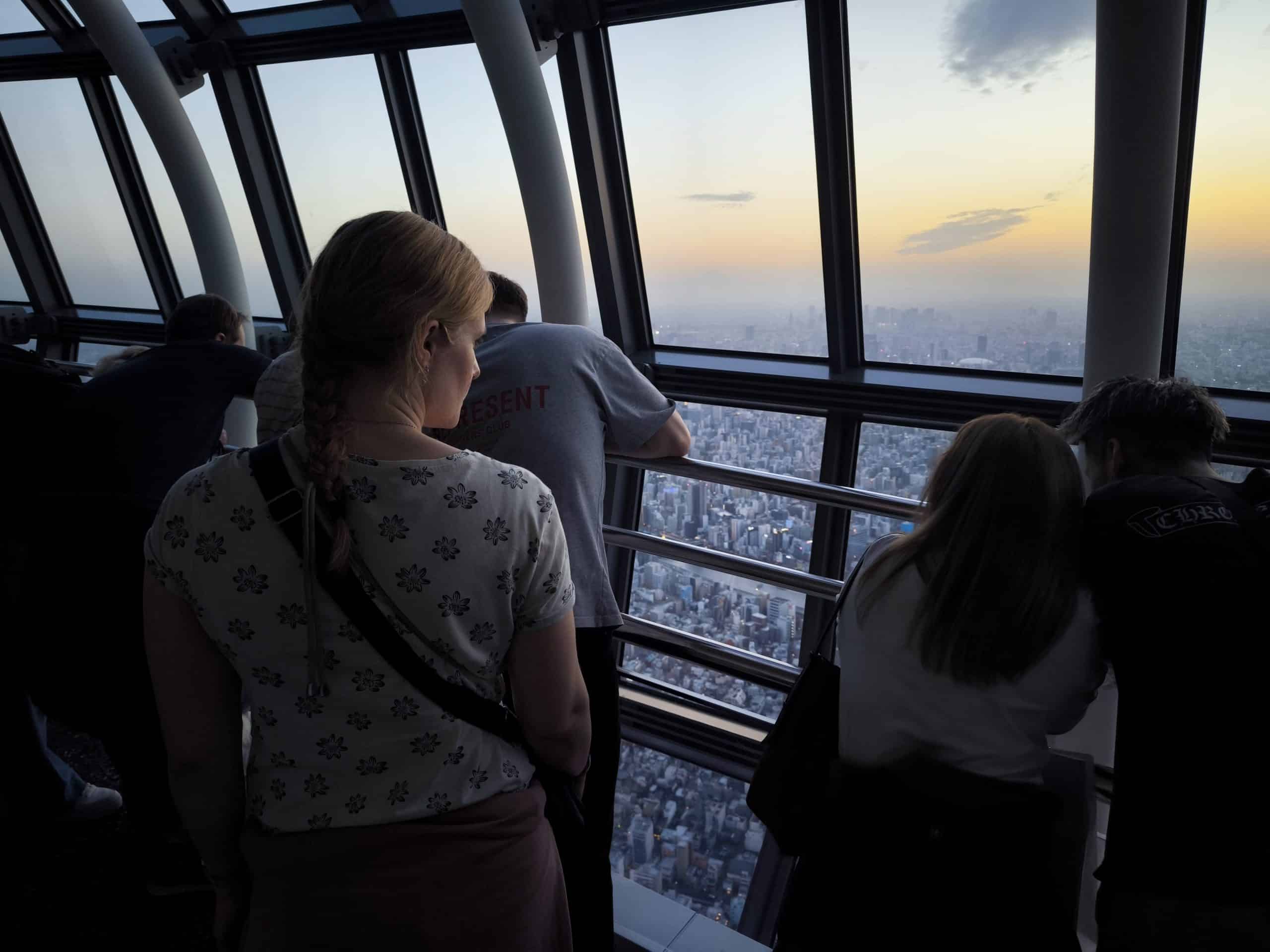 With a fake coffee and then a real coffee boosting our energy levels, it was time for the Skytree. I tried to book our tickets for sunset, which was a good idea, but we arrived literally as the sun was just dipping below the horizon. There was a crowd of about five people deep all the way around the windows. It was way busier up here than I expected, but we still got a few good shots.