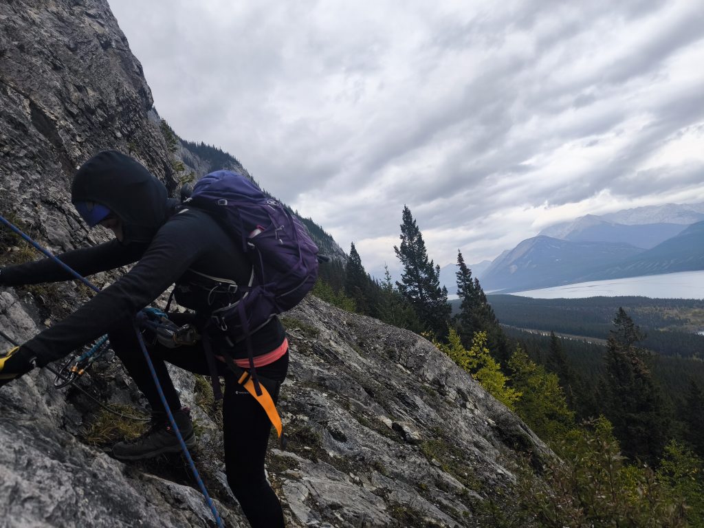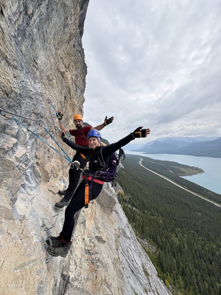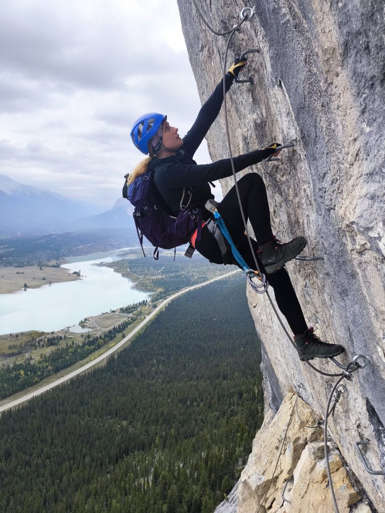 Via Ferrata it’s such a great way to get high into the cliffs with minimal gear. You just clip the metal cable and walk your way up the rungs and across the rock. I suspect whoever set these rungs in place was a little shorter than me tho. I did find myself gripping at chest height a lot which was fatiguing my arms.