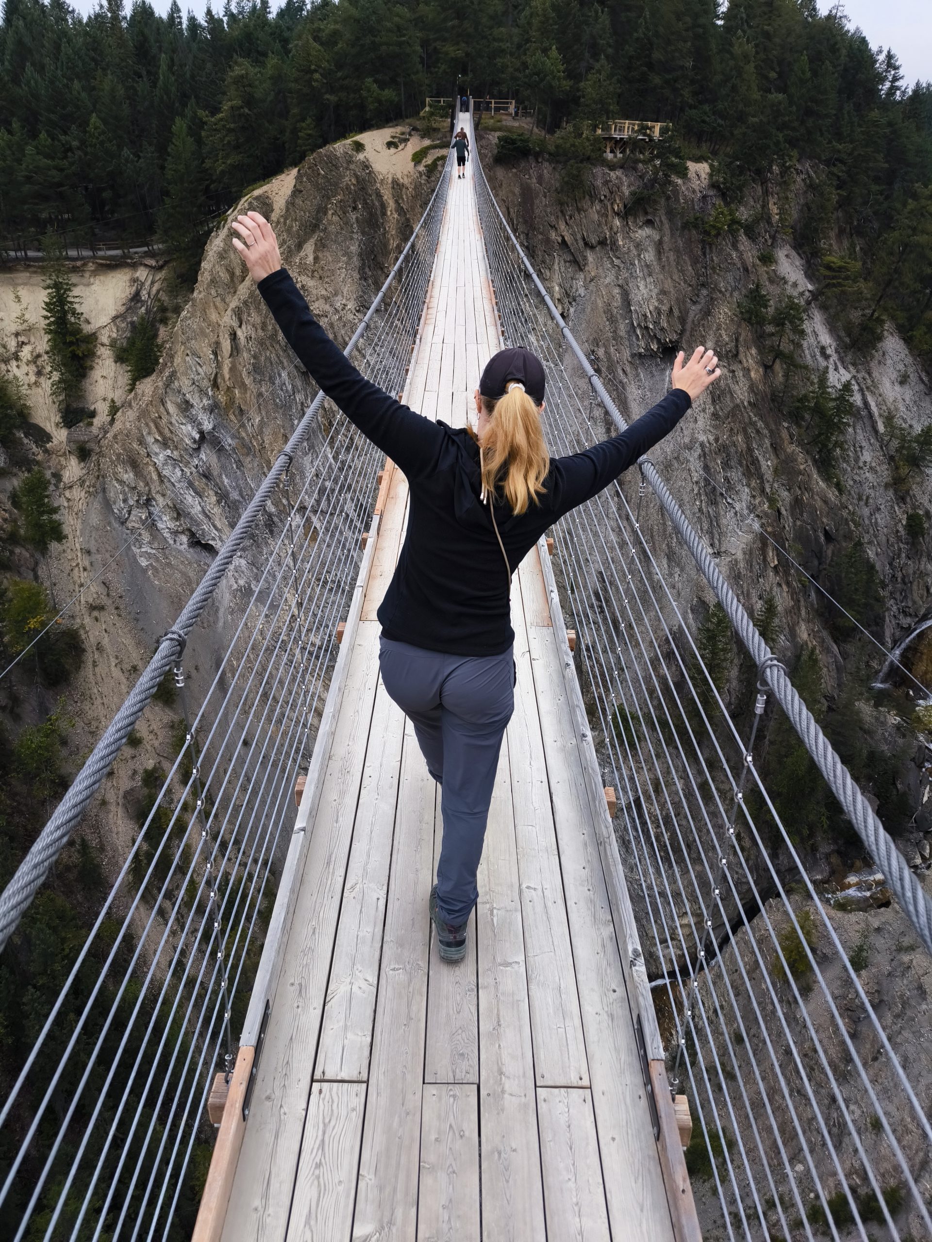 We arrived early at Golden Skybridge, an adventure park that sits straddling a deep ravine with two mega rope bridges. At 150m long each, and 130m above the valley floor you need a good head for heights. Some old dears clearly didn’t, and shuffled their way across really slowly, as if that would prevent it from collapsing.