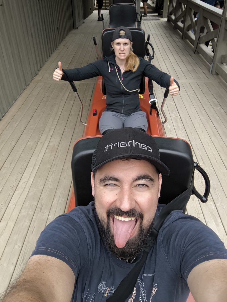 I wish we could have done it again but next up was the mega zipline across the canyon. Not much to say about this one. It was exciting and fast to fly over the canyon, but over quite quickly. I think I enjoyed the roller coaster more.