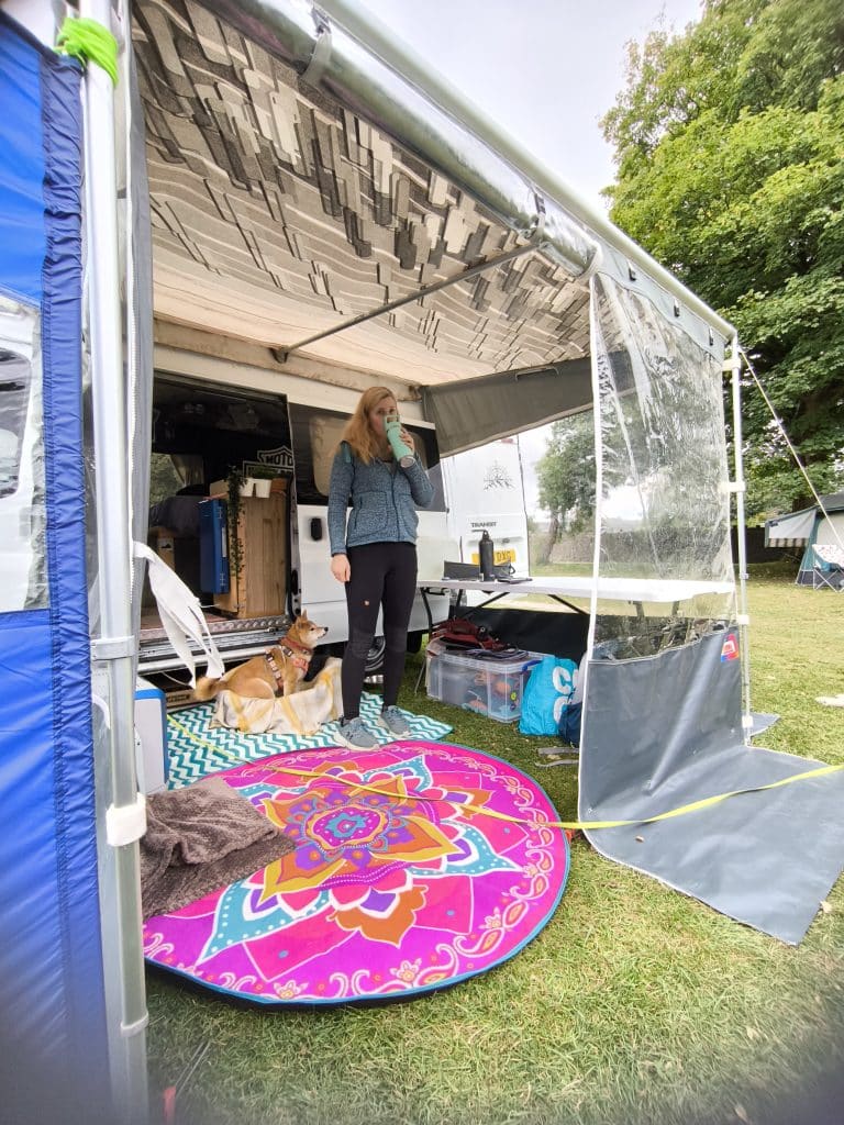 Packing up the van it feels noticeably heavy when we go camping. Dog stuff, food stuff, bed stuff, hiking stuff and clothes. And this time I’m bringing the awning too. I’ve only used it a few times but as this is the last hoorah for the van, I can put it up and get photos.