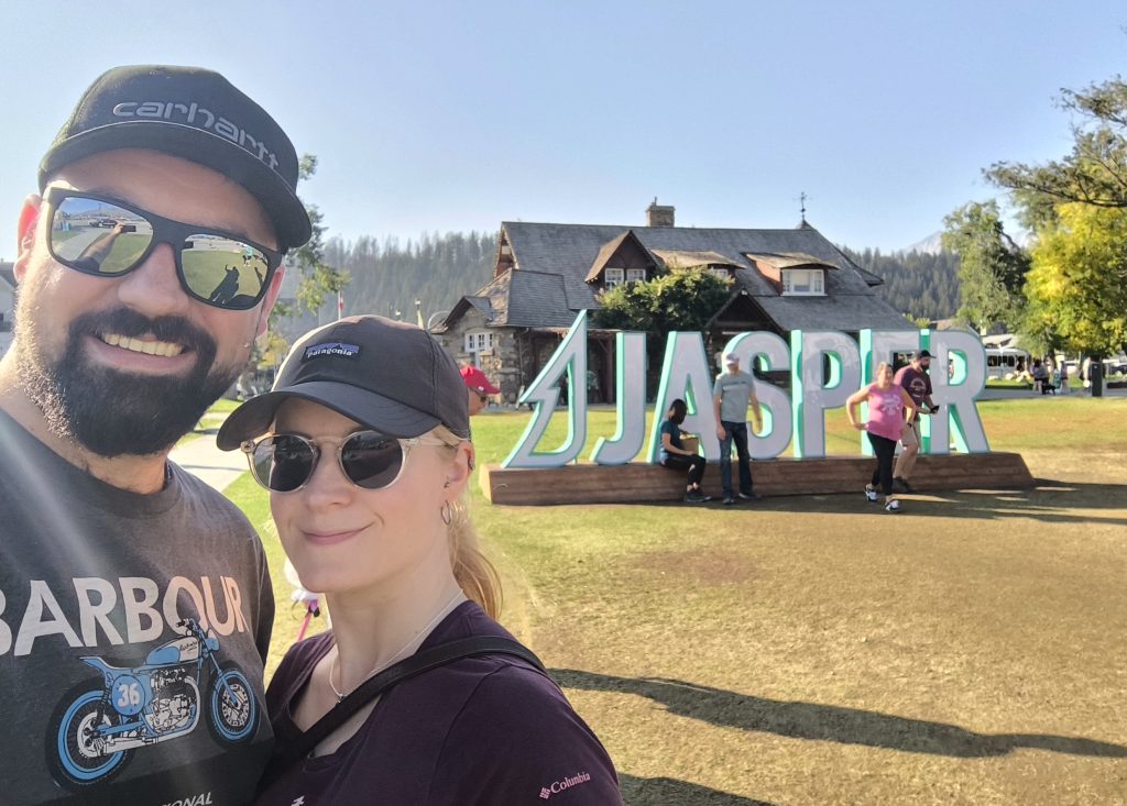 After dropping off the RV to be fitted for a new tyre, we walked across the railroad and into Jasper. The train station here is massive and basically the length of the whole town. At one point there was a huge freight train pulling in, it was so long the carriages just kept going on and on. Luckily there was a foot traffic underpass so we walked into town and found food.
