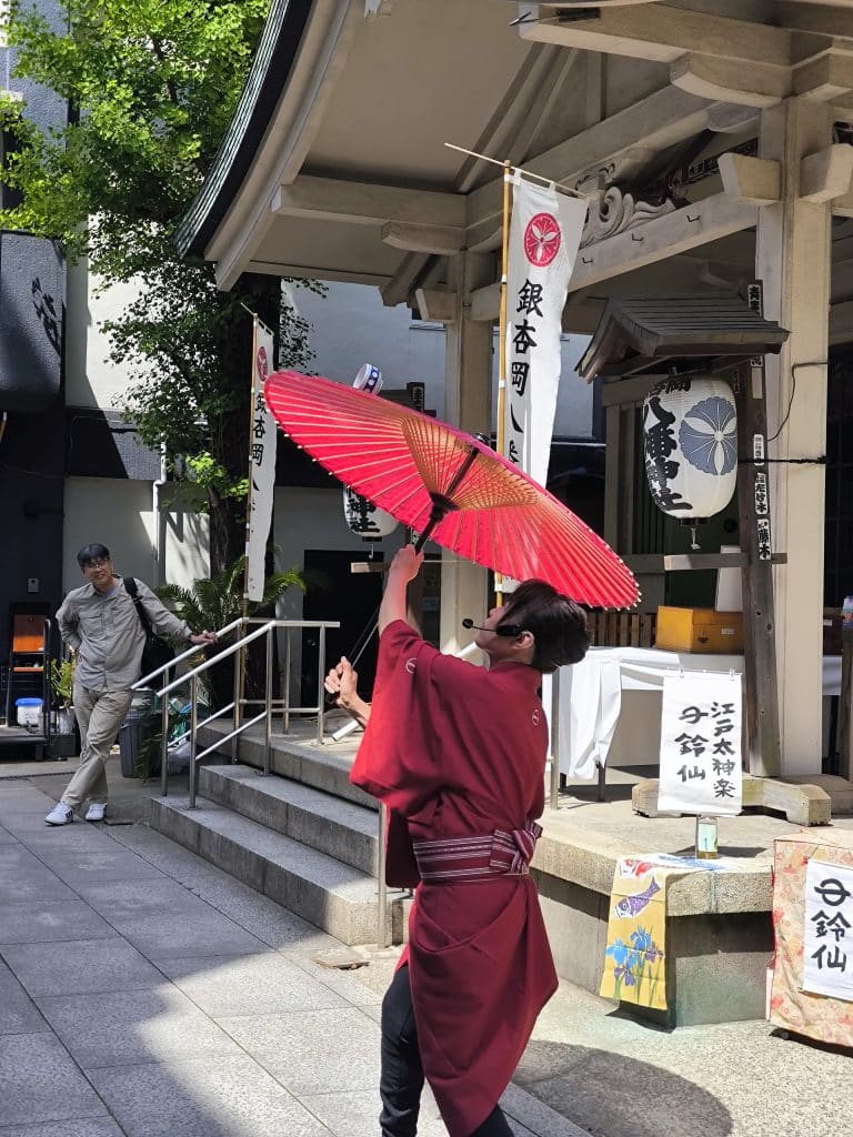 But the fair-trade wasabi sweets looked good. So did another lady who spun plates on the rim of a Japanese umbrella. She was very impressive; I was convinced the little porcelain pot would fall and explode into a million pieces. But she got it spinning incredibly quickly.