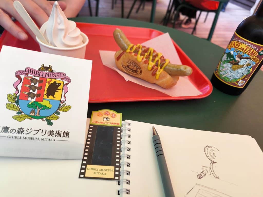 After stopping for a small hotdog lunch—a really small hotdog lunch—we set off exploring more of the exhibits and book shops before lining up for the cinema. Here they show an exclusive animation not released outside of the museum. We had seen some of the sketches of the characters just before entering, so it was great to see them come to life.